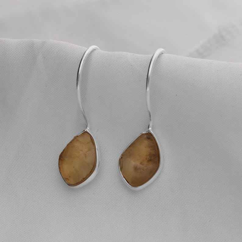 Handmade Raw Aquamarine Dangle Earrings 925 Sterling Silver Natural Gemstone