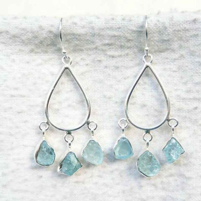 Handmade Raw Aquamarine Earrings 925 Sterling Silver Modern Minimalist Jewelry