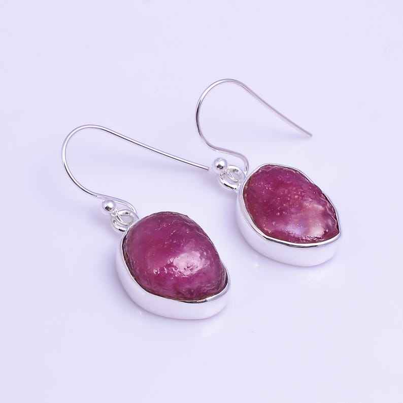 Handmade Raw Citrine Dangle Earrings 925 Sterling Silver Natural Gemstone