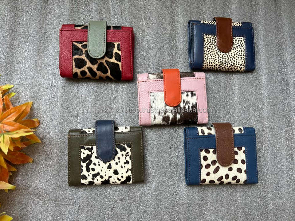 Handmade Real Hair Hide Animal Print Fur Leather Clutch Casual Stylish Wallets Card Holder Genuine Leather Small Coin Purse Cute