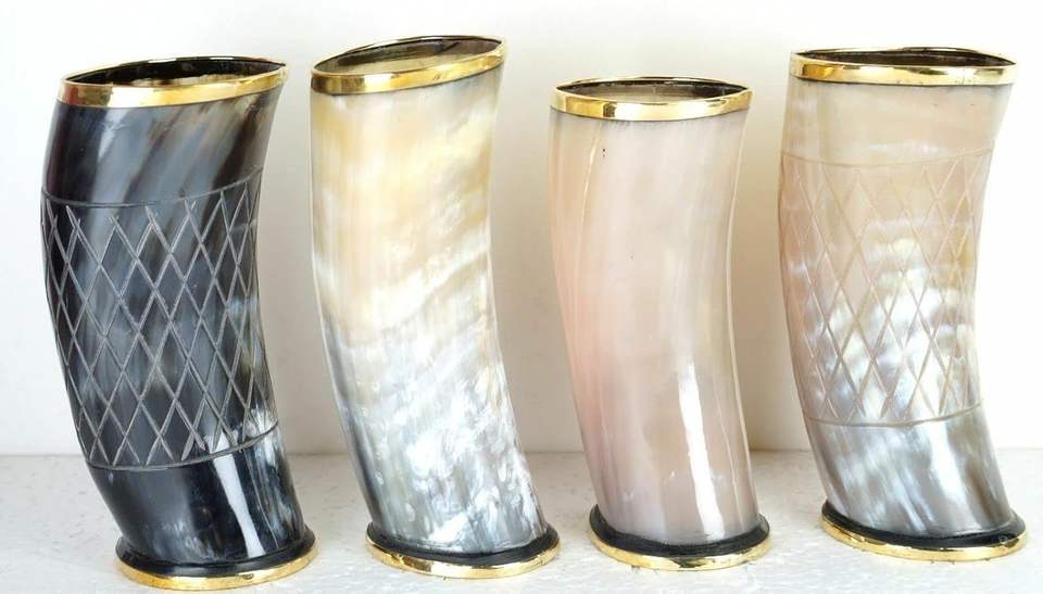 "Handmade Real Horn Polished Drinking Horn Mug/Tankard Custom Logo Latest India Royal Design Bulk blank sublimation, diy
