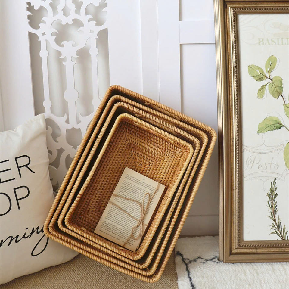 Handmade Rectangle Woven Rattan Basket Versatile Home Storage for Cosmetic Cloth Bathroom Living Room Housewarming Gift