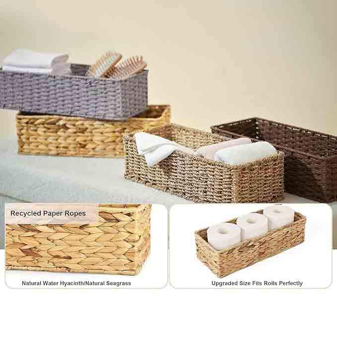 Handmade Rectangular Wood & Cane Rattan Tray Serving & Decorative Tray for Home Hotels Farmhouses Storage Rattan Baskets Decors