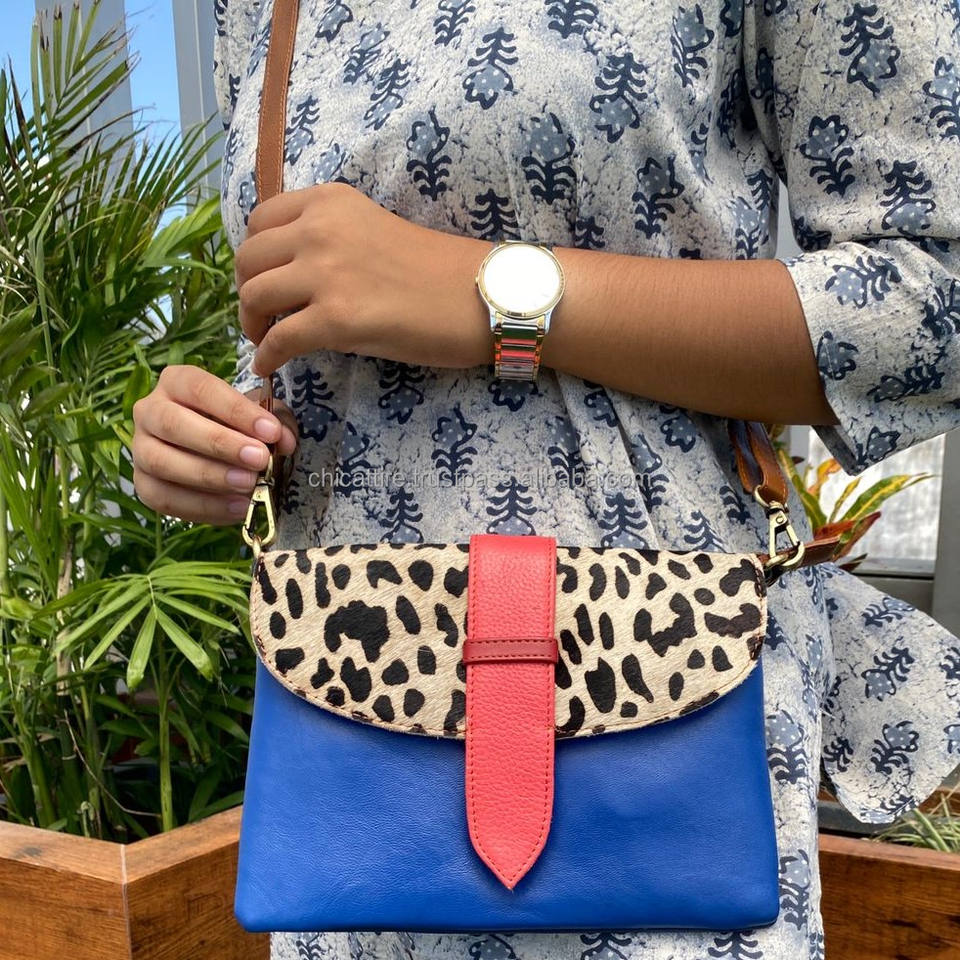 Handmade Recycled Colored Leather Bag Animal Print Hippie Crossbody Purse Women Ethnic Indian Shoulder Bag Custom Cotton Gift