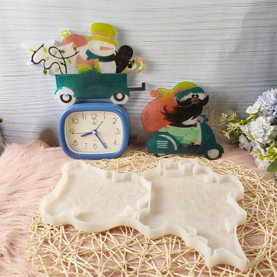 Handmade Resin Casting Molds DIY Ins Style Decorative Ornaments Cartoon Santa Claus Delivering Gifts Silicone Mold Cake Tools