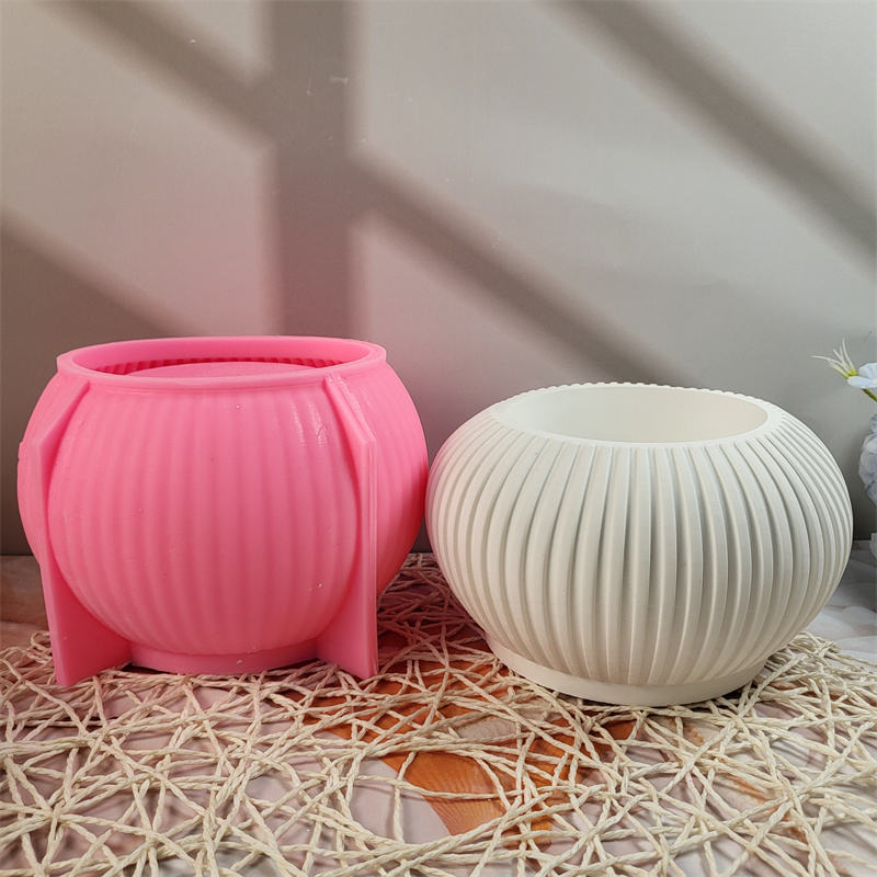 Handmade Resin Casting Molds for DIY Decorative Ornaments Ins Style Silicone Striped flower pot Molds W0202