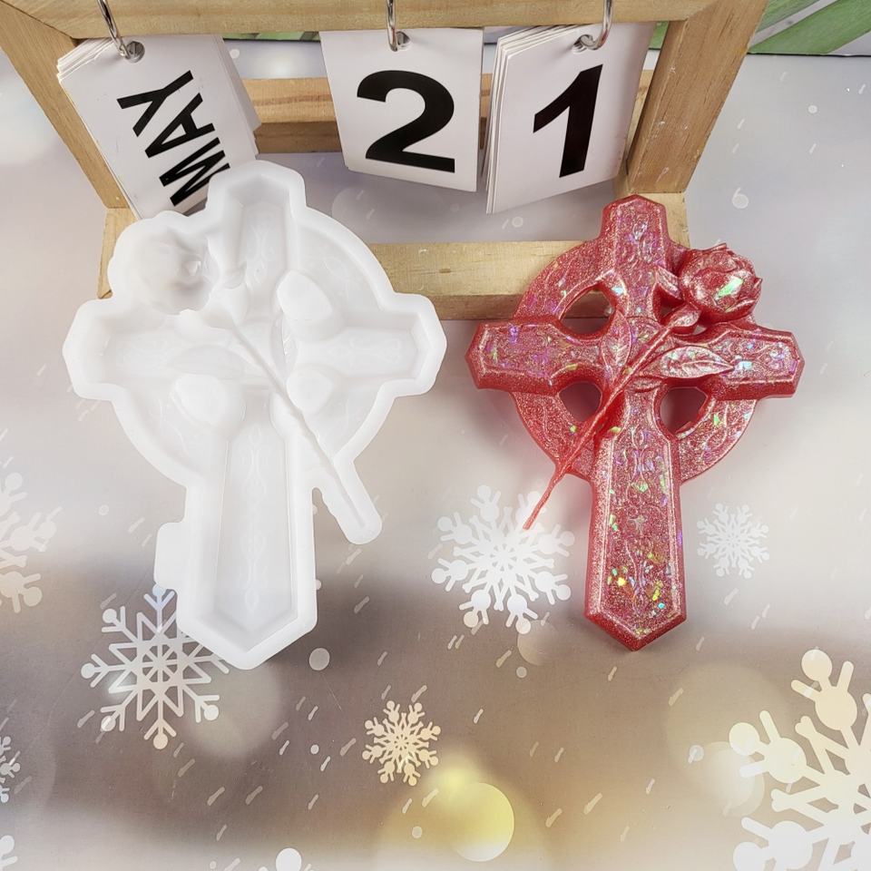 Handmade Resin Casting Molds for DIY Decorative Ornaments Ins Style Silicone Cross rosary ornament Mold X0113