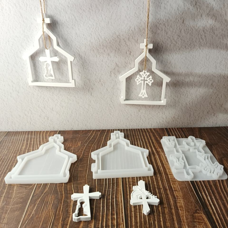 Handmade Resin Casting Molds for DIY Decorative Ornaments Ins Style Silicone Cross hollow house pendant Mold X0587
