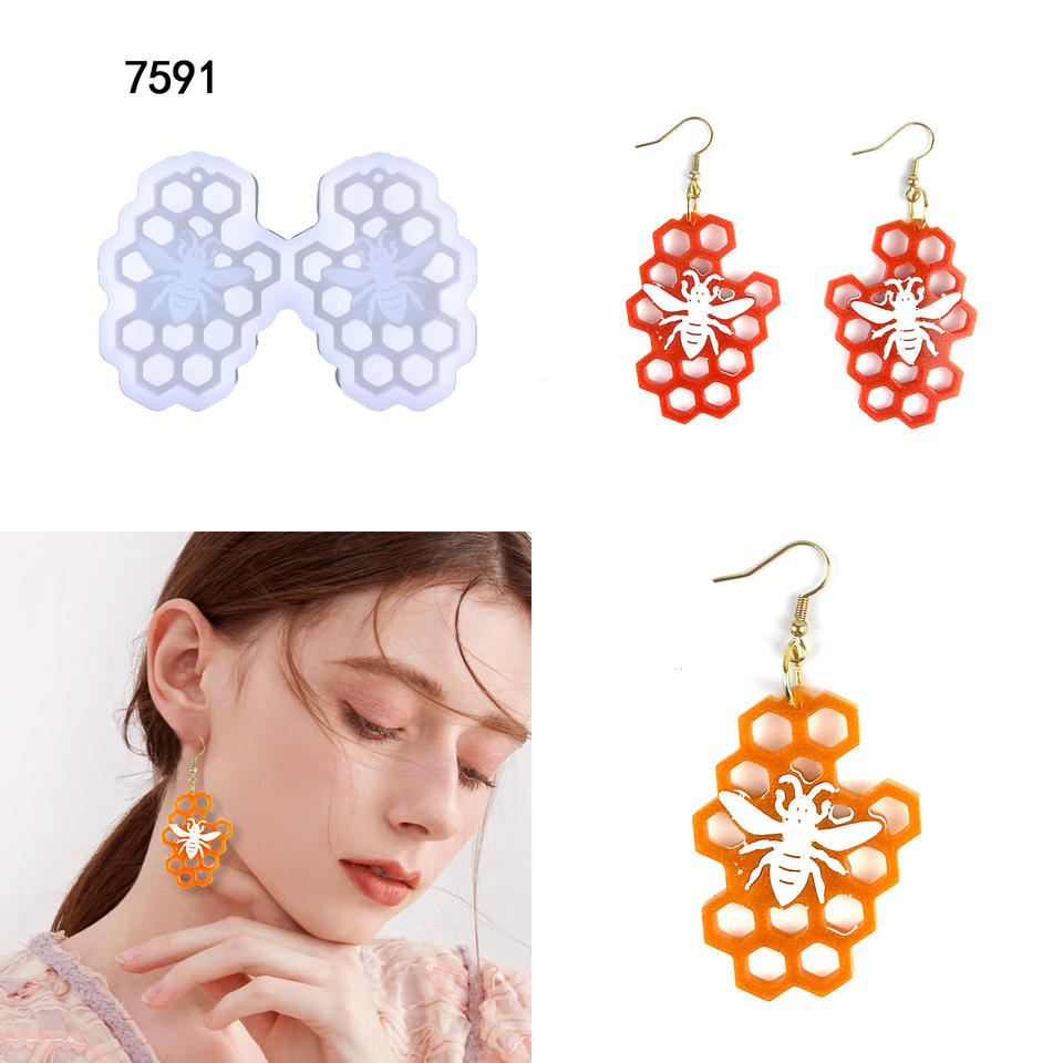 Handmade Resin Casting Molds for DIY Decorative Ornaments Ins Style Silicone Bee hive earrings Mold 7591