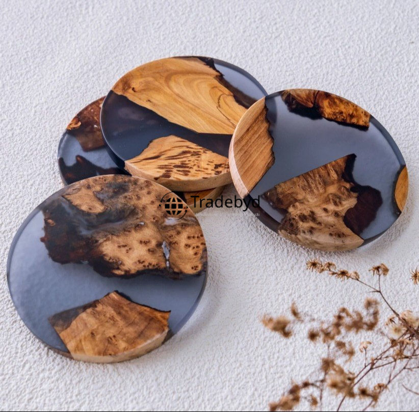Handmade Resin Coaster Set-4X4 Inches Square Luxury Drink Coasters with Custom Logo for Home & Commercial Use by Tradebyd