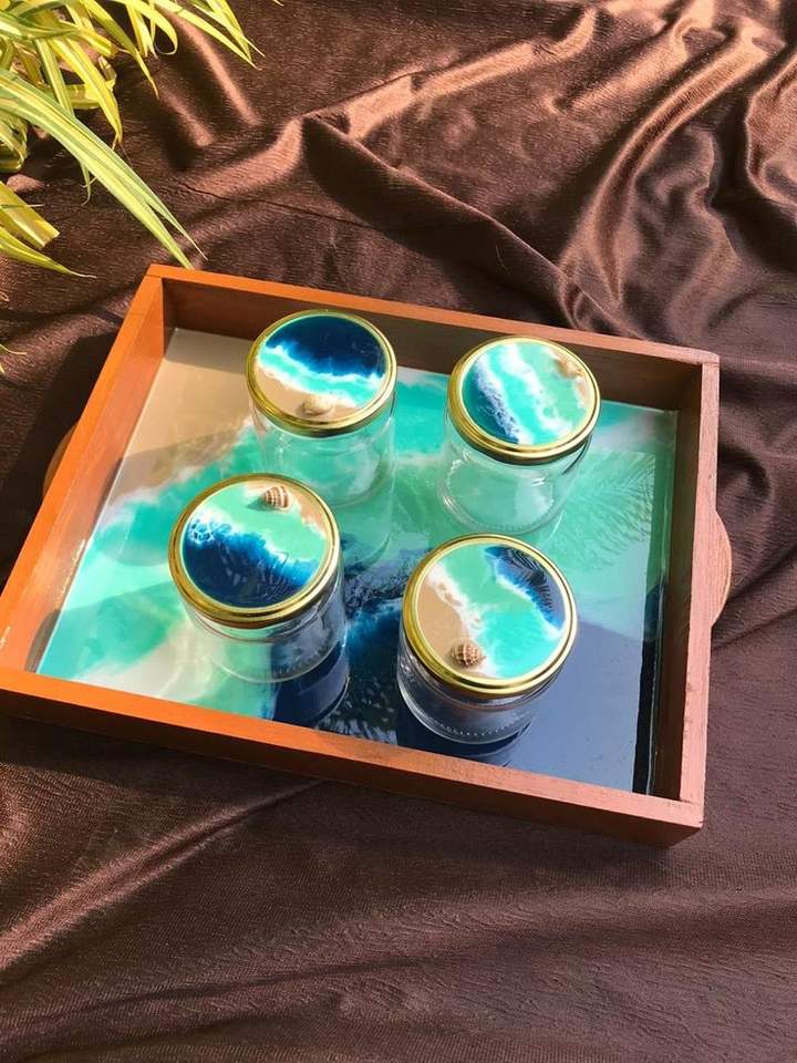 Handmade Resin Epoxy Serving Tray Beautiful One-of-a-Kind Wall Shelf for Kitchen Home Restaurant Hotel Decorative Serving Trays