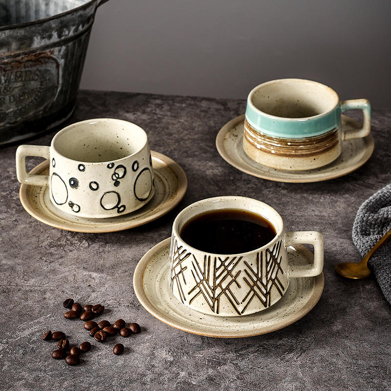 Handmade Retro Style Reactive Glaze Ceramic Mug Coarse Pottery Coffee Cup Tea Cups & Saucers Hand-painted for Coffee