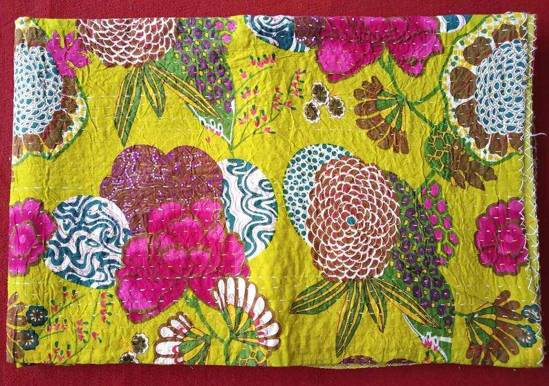 Handmade Reversible Kantha Quilt Floral Vintage Indian Stitching Eco-Friendly Cotton Blanket Home Decor Baby Comfortable