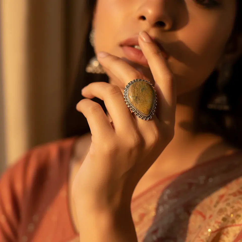 "Handmade Rhodium-Plated Turquoise Ring for Women's Fine Jewelry Gift"