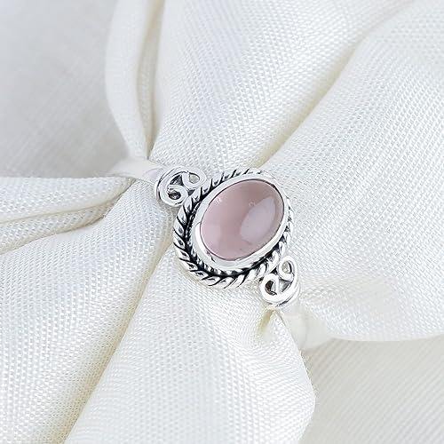 Handmade Ring Natural Rose Quartz Ring 925 Solid Sterling Silver Oval Shape 925 Silver Stamped Handmade Silver Jewelry Ring