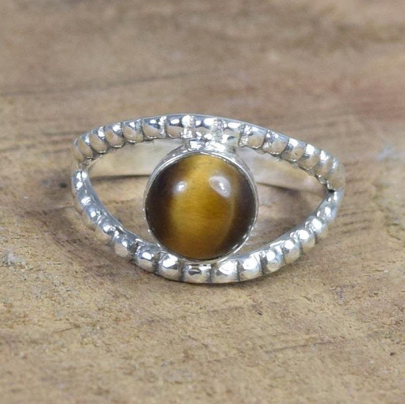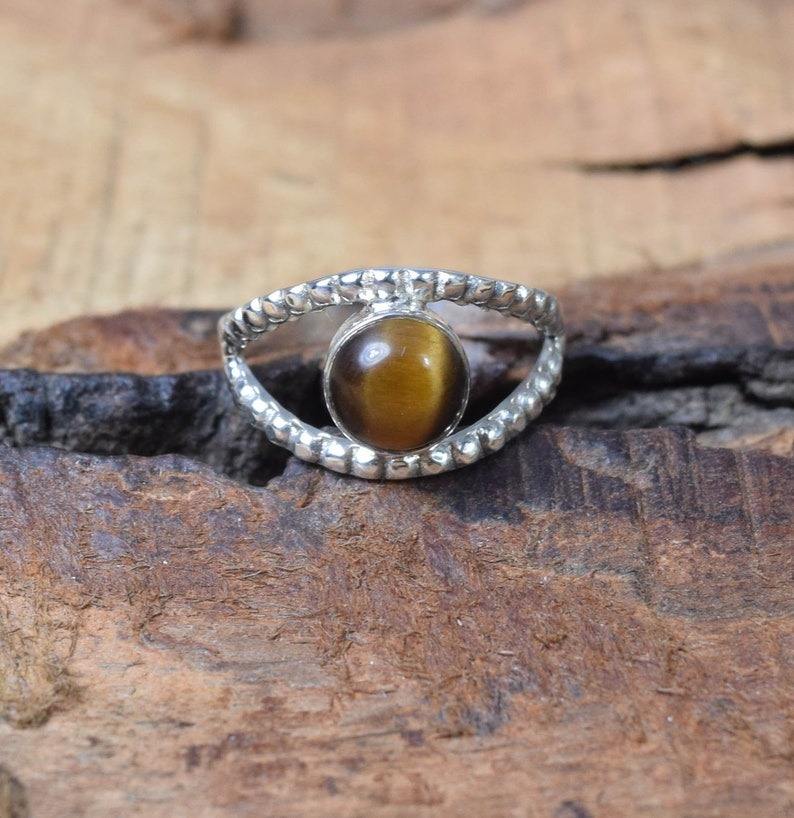 Handmade Ring Simple Tiger Eye Gemstone Solid 925 Sterling Silver Natural Gemstone Jewelry 925 Stamped Sterling Silver Ring