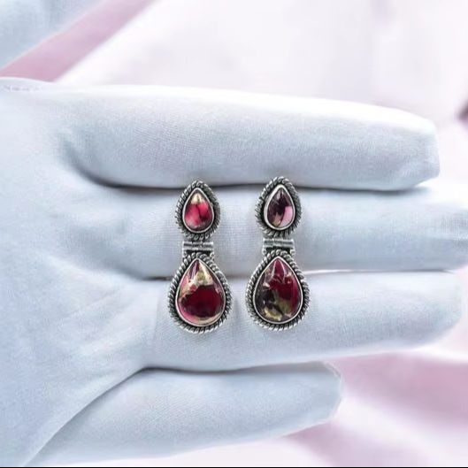 925 Silver Earrings with Natural Gemstone