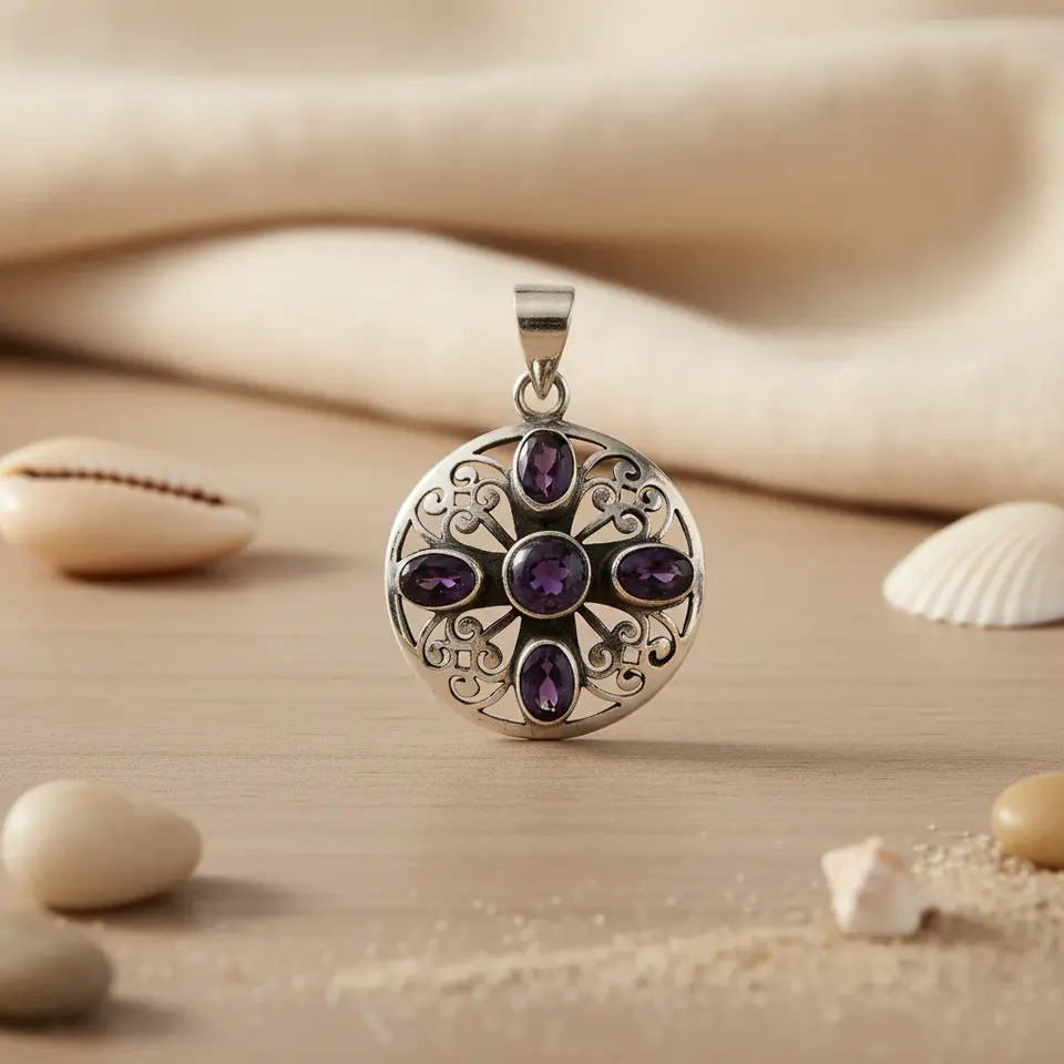 "Handmade Rose Gold 925 Silver Amethyst Pendant Charm for Women"
