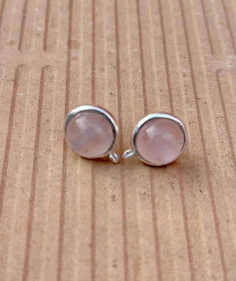 Handmade Rose Quartz Fine Stud Earrings Small Raw Gemstone Carved Quartz Crystal Natural Silver Sterling Elegant Luxurious