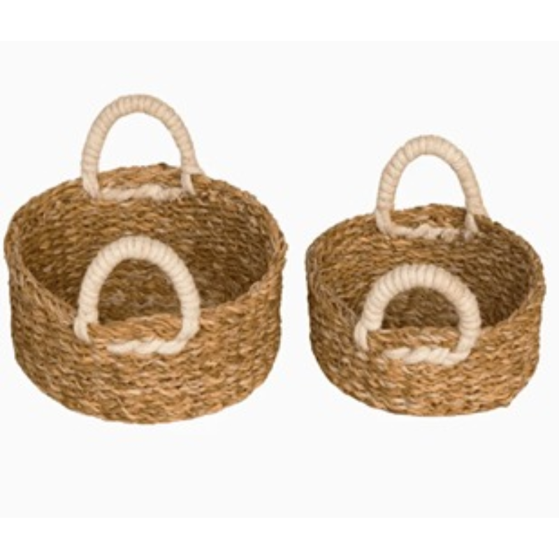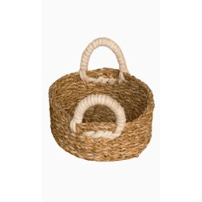 Handmade Round Basket with Handle Woven Seagrass & Jute Foldable Storage Basket for Eco-Friendly Home Decor & Organization