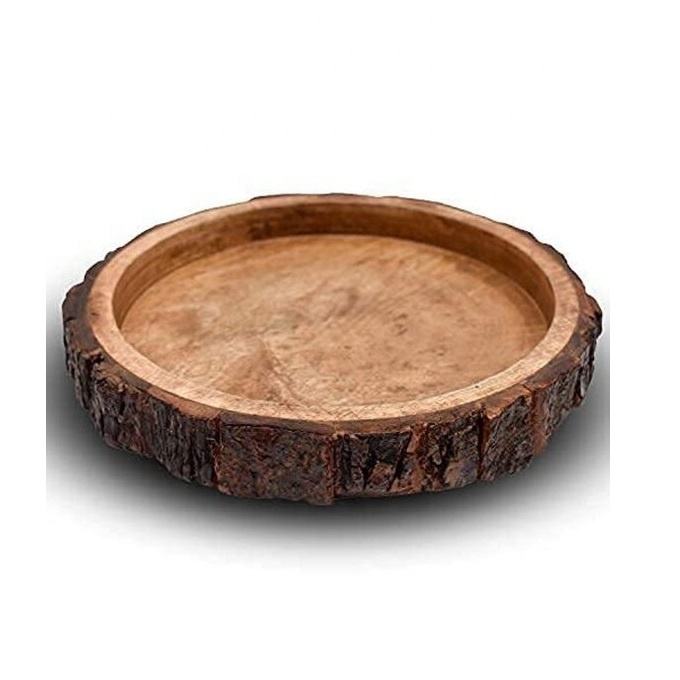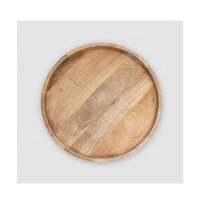 Handmade Round Mango Wood Serving Tray Polished Customizable Engraved Design Storage Food & Tea Decor Gift