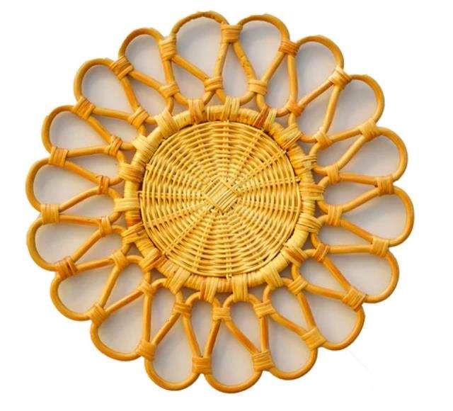 Handmade Round Rattan Charger Plate Floral Round Placemats Natural Rattan Placemats for Dining Wholesale