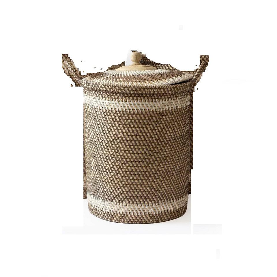 Handmade Round Rattan Woven Waste Bins Lids Wicker Baskets Laundry Hamper Other Home Clothing Storages & Organization Natural