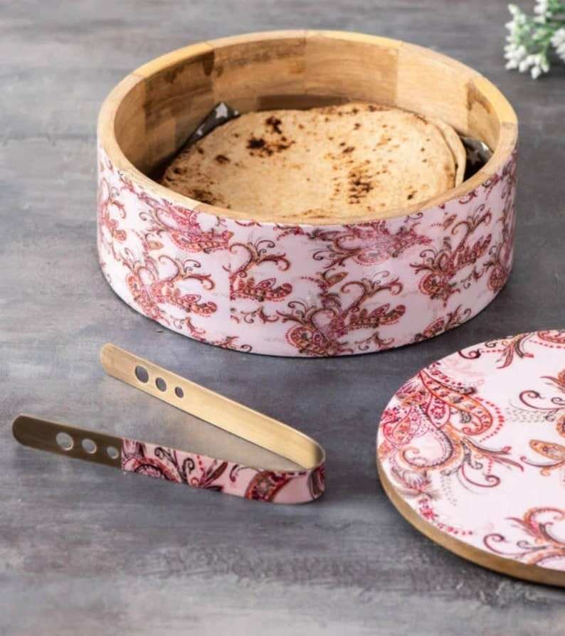 Handmade Round Shape Wooden Enamel Box/Roti Top Quality Kitchen Use Wood Roti Box for Shape Low Price