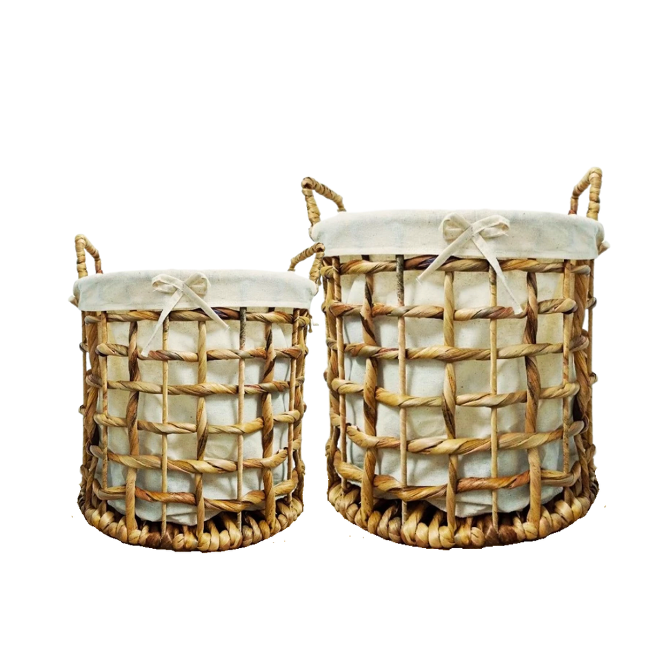 Handmade Round WATER HYACINTH STORAGE BASKET with Washable Cotton Liner with Handles OEM/ODM Available