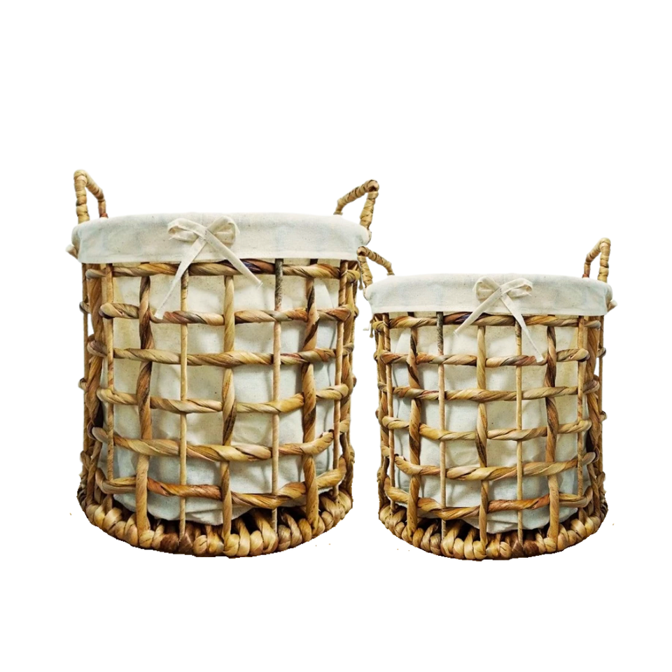 Handmade Round WATER HYACINTH STORAGE BASKET with Washable Cotton Liner with Handles Perfect for Clothes & Storage