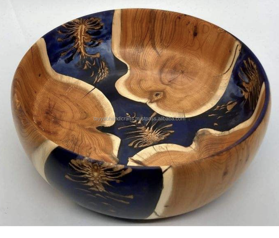 Handmade Eco-Friendly Classic Round Wooden Bowl with Epoxy Resin Decorative Dip Bowl and Ring Dish