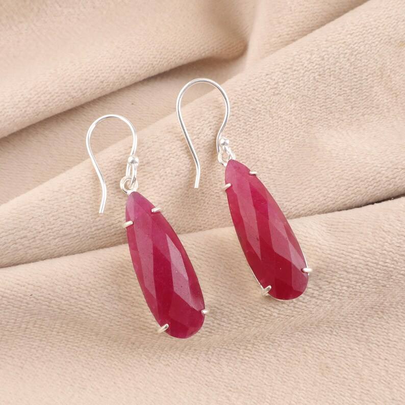 Handmade Ruby Drop Earrings 925 Sterling Silver Dangle Jewelry Elegant Gift For Women July Birthstone