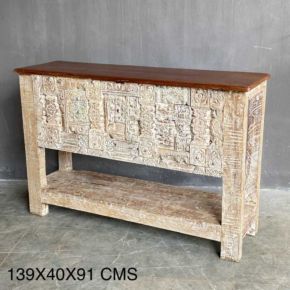 Handmade Rustic Wooden Console Table with Mirrored Feature Solid Wood Living Room Furniture with Storage for Hotel Decoration