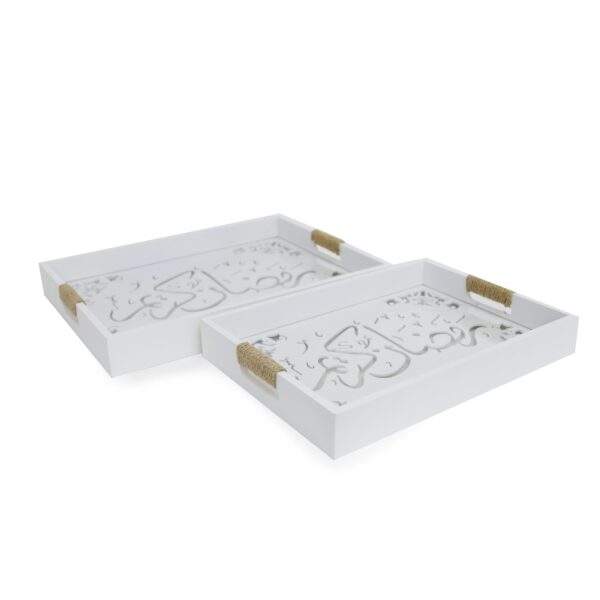 Handmade Rustic Wooden Rectangular Tray with Sturdy Handle Enamel Coated for Easy Serving in Kitchen Dining or Coffee
