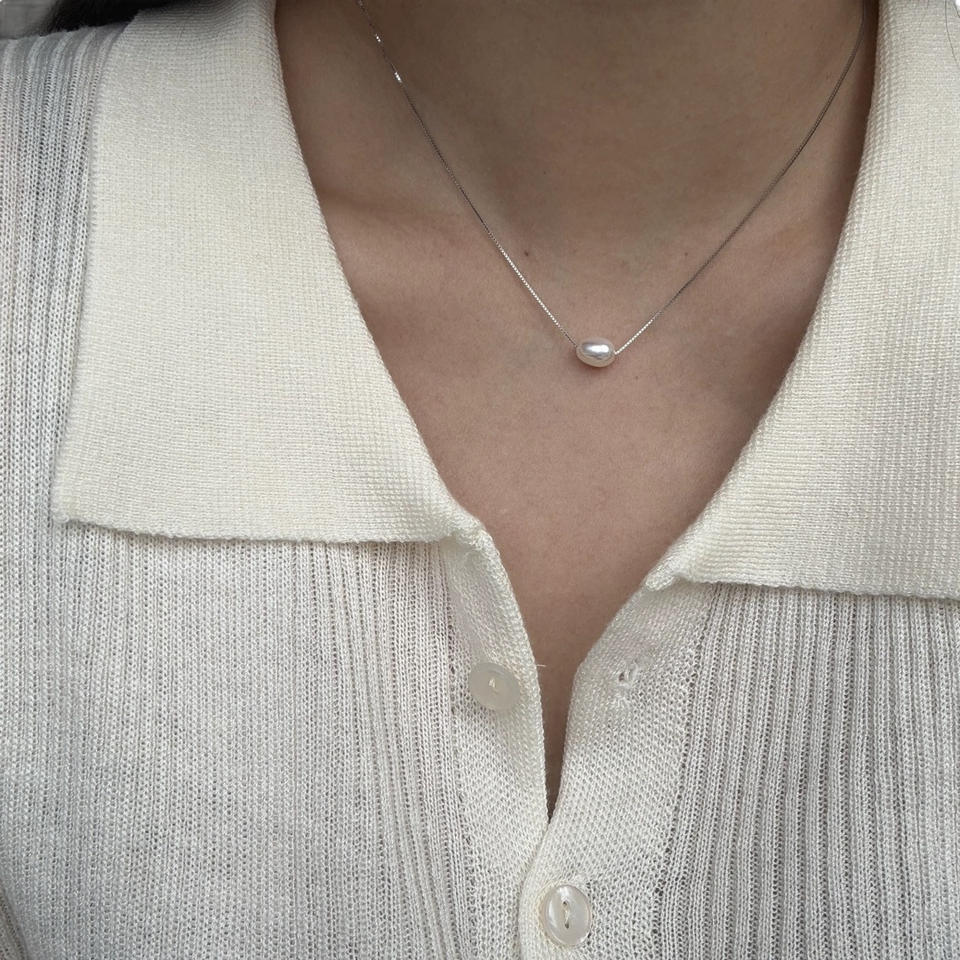 Handmade S925 Pure Silver Freshwater Pearl Collarbone Necklace Adjustable with Small Pearl Niche Design