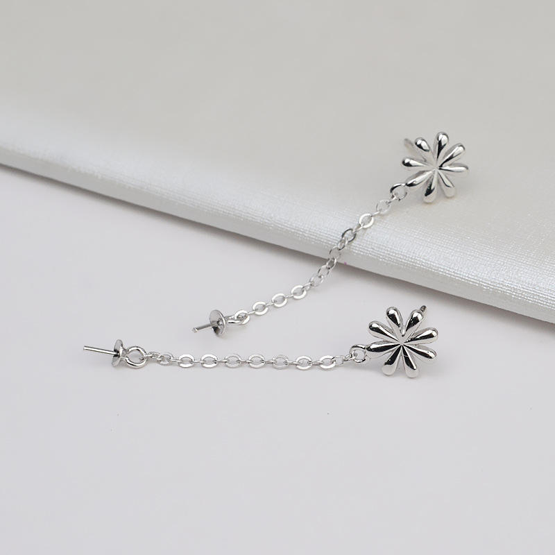 Handmade S925 Silver & 7-12 Pearl Lucky Grass Earrings Korean Edition DIY Female Studs with Empty Support Fashion Accessories