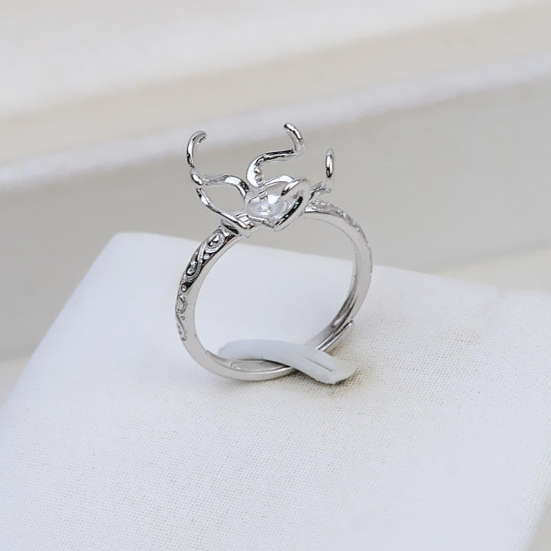 Handmade S925 Silver Open-End Flower-Shape Ring Bezel Setting Baroque Style DIY 9-11 Pearls Accessory Open-ended Pearl Ring
