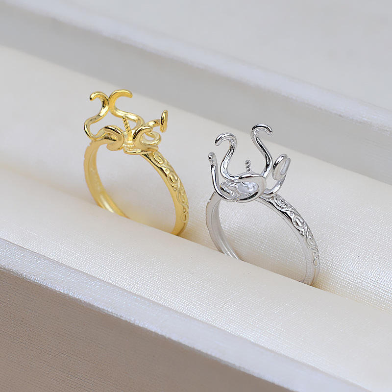 Handmade S925 Silver Open Flower Ring Baroque 9-11mm Pearl Tray DIY Accessories Gold Plated Beads 10mm Size Jewelry Plated