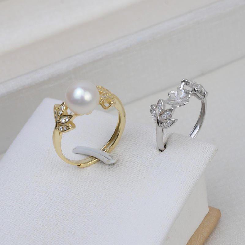 Handmade S925 Silver Open Pattern Ring Female Living 8-9 Pearl DIY Accessories Semi-Finished 161 Empty Tray