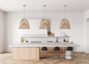 Handmade Santa Barbara Rattan Pendant Light Handwoven Rattan Coastal Boho Lighting for Dining Room Kitchen Bedroom