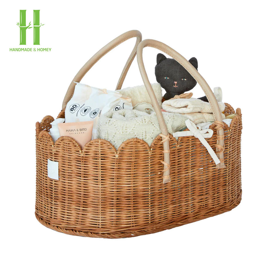 Handmade Scalloped Wicker Rattan Bags For Easter Decorations, Folding Storage Box jiahao, Storage Boxes & Bins, Laundry Baskets