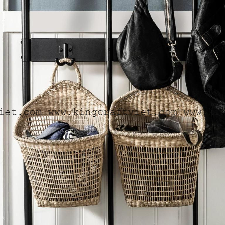 Handmade Seagrass Shelf Organizer Wall Hanging Wicker Rattan Baskets Home Decor Handicrafts Storage Welcome OEM/ODM