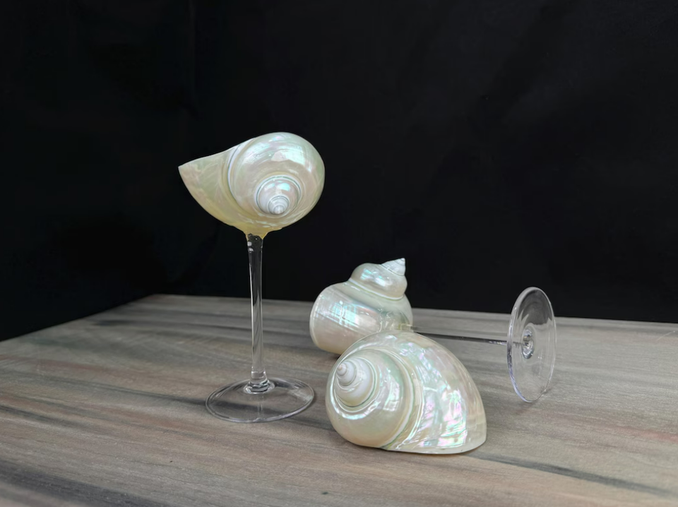 Handmade Seashell Glasses for Elegant Wedding Tableware /Boho Coastal Wine Glasses Event Decor for Beach or Garden Weddings