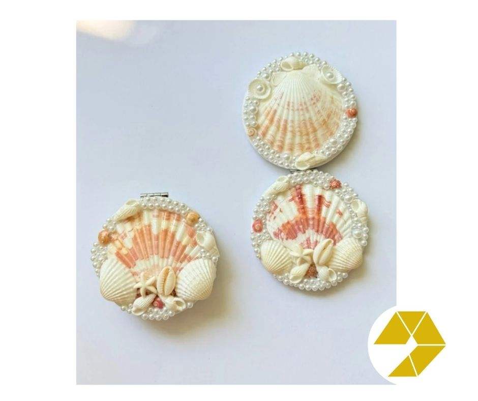 Handmade Seashell Mirror from Vietnam Polished Shells Compact Travel Seashell Mirror for Coastal Style Decor Special Offer