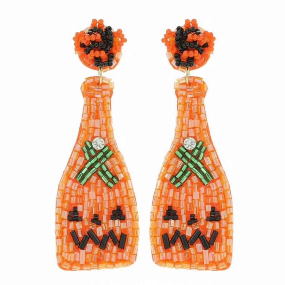 Handmade Seed Bead Halloween Pumpkin Dangle Hoop Earrings Festive Parties Fashionable Trendy Antique Bronze Plated Wedding Gift