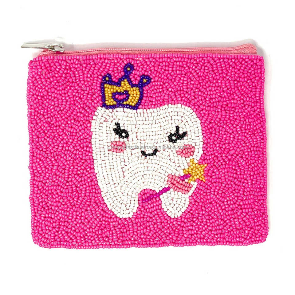 Handmade Seed Beaded Tooth Fairy Coin Purse Kids Gift Zipper Pouch Crown Wand Embroidery Clutch Small Bag Custom Wholesale