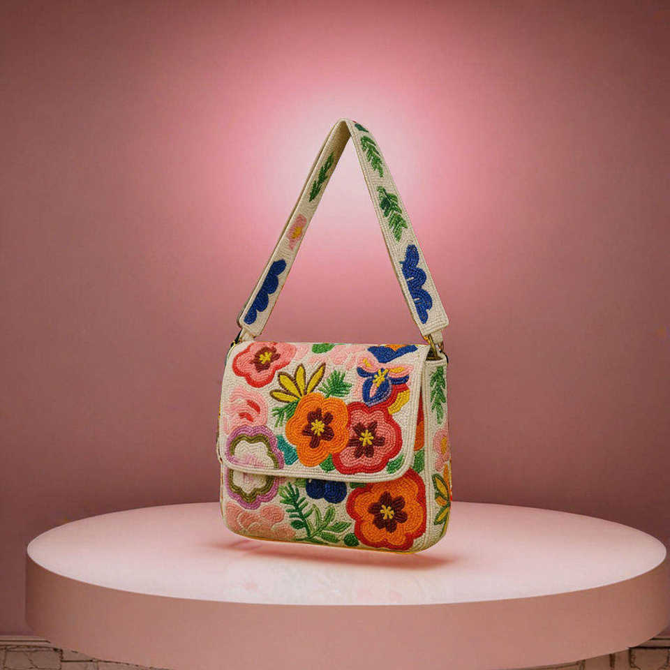 Handmade Seed Beads Embroidery Clutch Bag Beaded Clutch New Design Artisanal Floral Motif Hand-stitched Small Beads
