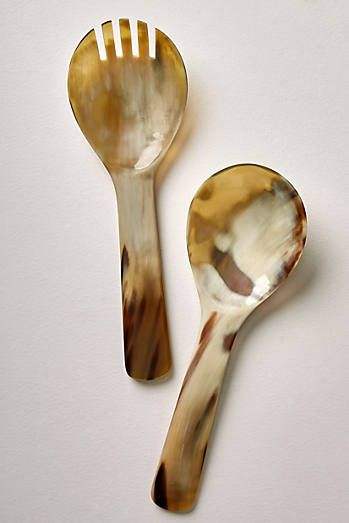 Handmade Serving Horn Spoon with Bone Handle Horn Serving Trendy Horn Salad Server With Decorative Handle Horn Bone Salad