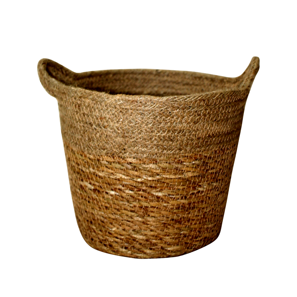 Handmade Sewing Jute Seagrass Basket Plant Pots Storage with Convenient Handles Decoration for Home and Garden Office Workplace