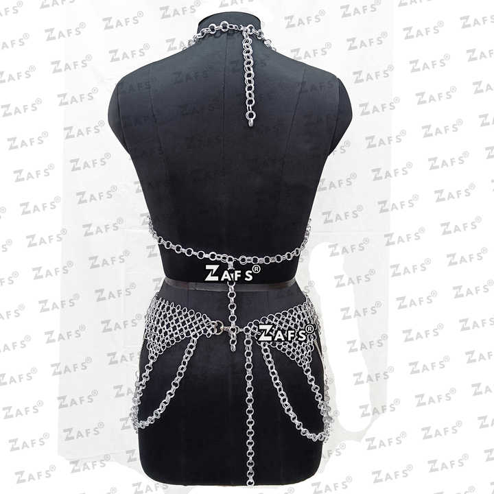 Handmade Sexy Viking Halloween Party Armor Antique Aluminum Chainmail Bikini Halter Bra Skirt Shape Carved Engraving Metal
